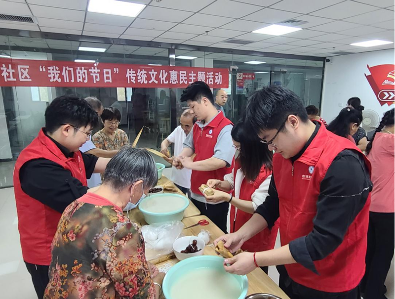 6月5日上午,公司志愿者服務(wù)小隊(duì)來到棉紡東路社區(qū)居委會(huì),為居民帶去了制作粽子的江米、蜜棗、粽葉等材料,并與居委會(huì)工作人員一同組織居民開展端午節(jié)活動(dòng)。活動(dòng)中,志愿者們與社區(qū)居民們親切交流,大家熱情洋溢,包粽子的同時(shí)還一同唱起來紅色經(jīng)典歌謠,文明實(shí)踐站內(nèi)充滿了濃厚的節(jié)日氛圍。